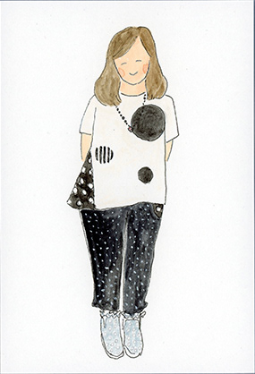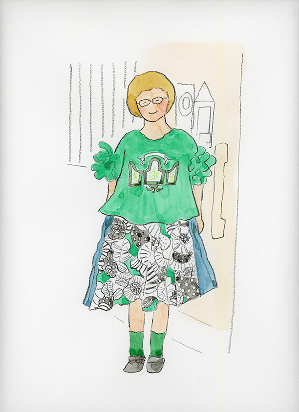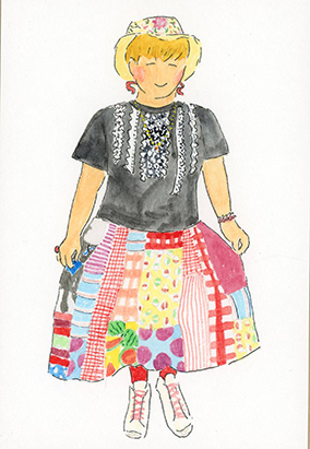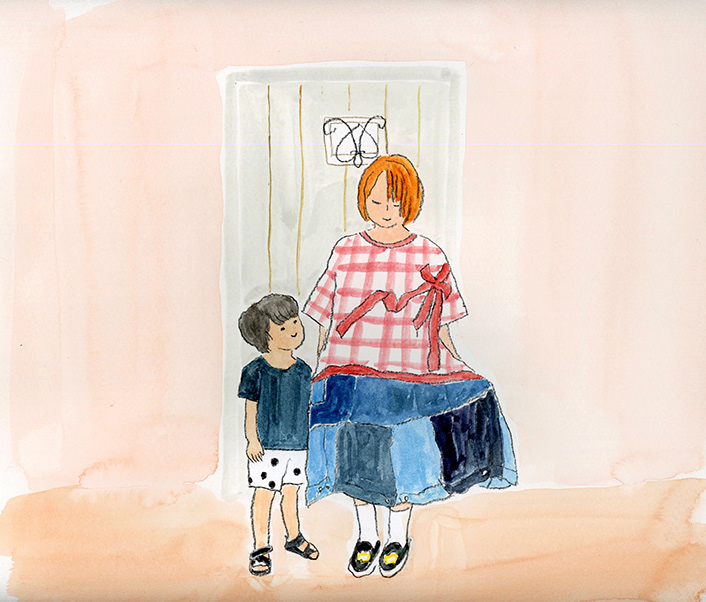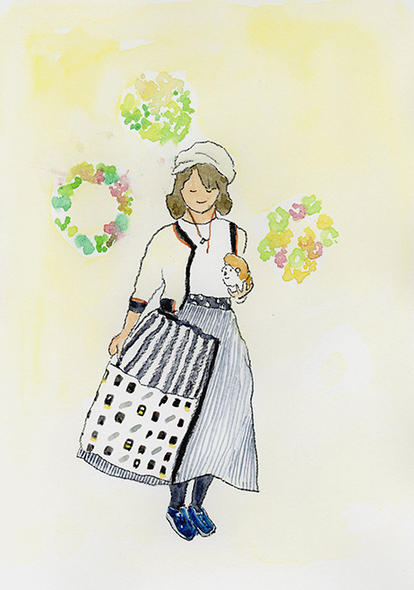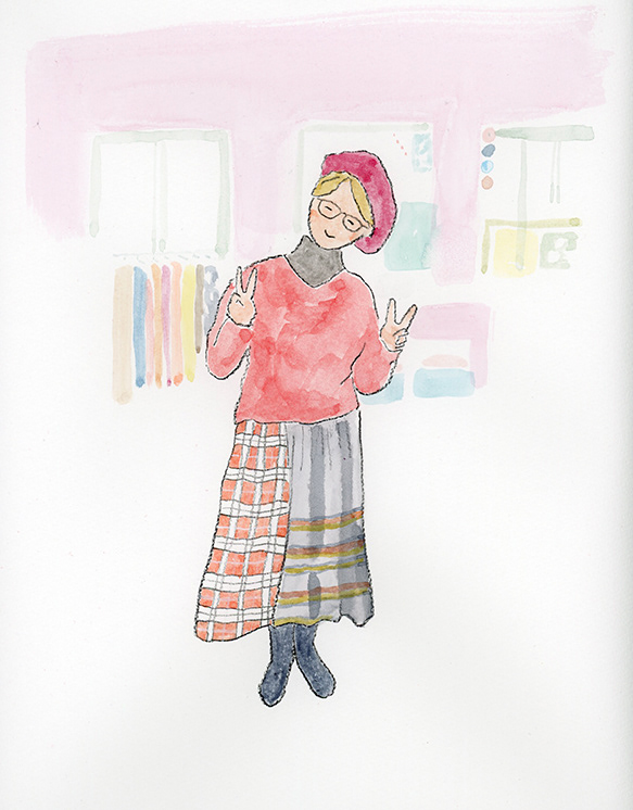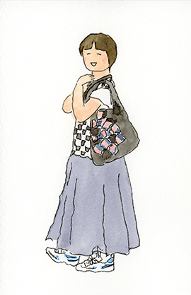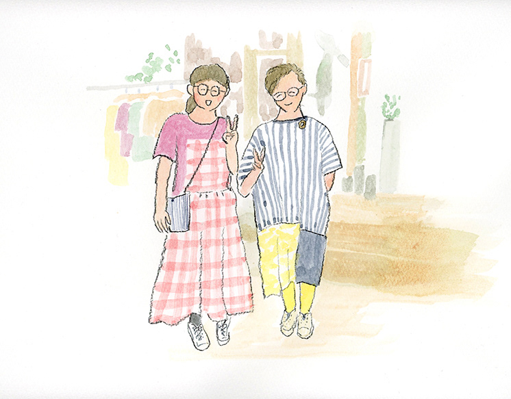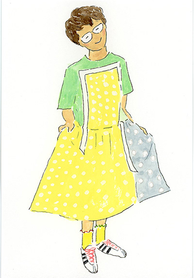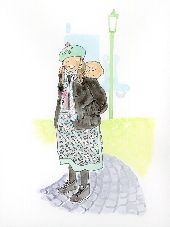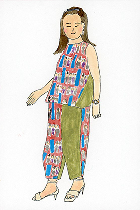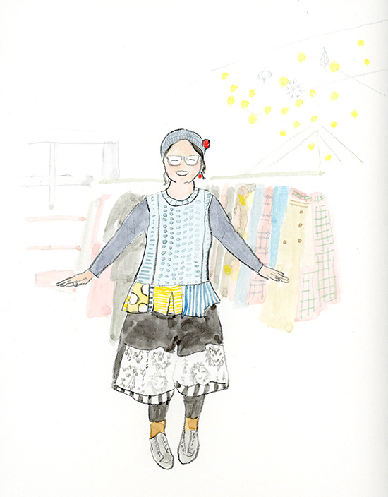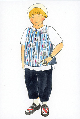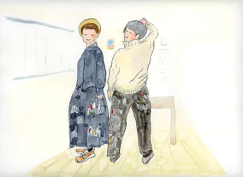 洋服デザイナー・osampoさんが作ったお洋服を着た、素敵な人たちの絵を描きました。